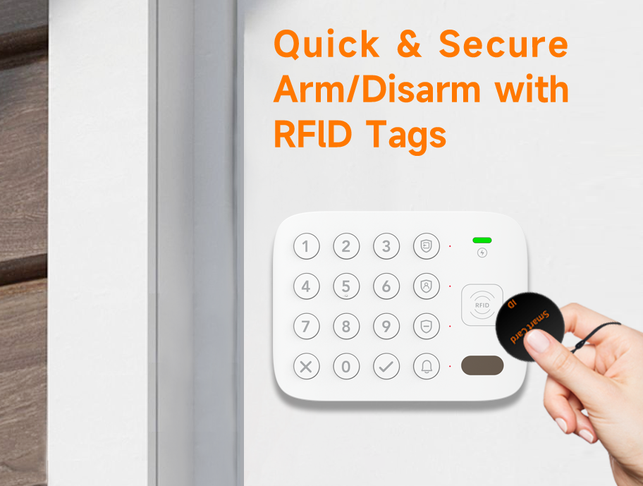 Arm/disarm instantly with RFID tags (1-second tap) |